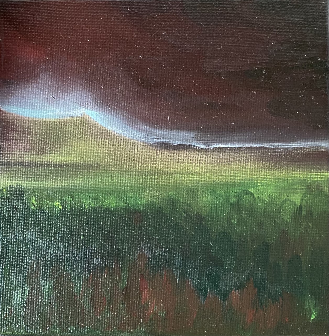 In the next, more recent painting (January 2021), Arjuna has recovered his weapons, and a bird comes to see him. The bird is descending upon Arjuna (holy spirit-like) to impart some instructions.